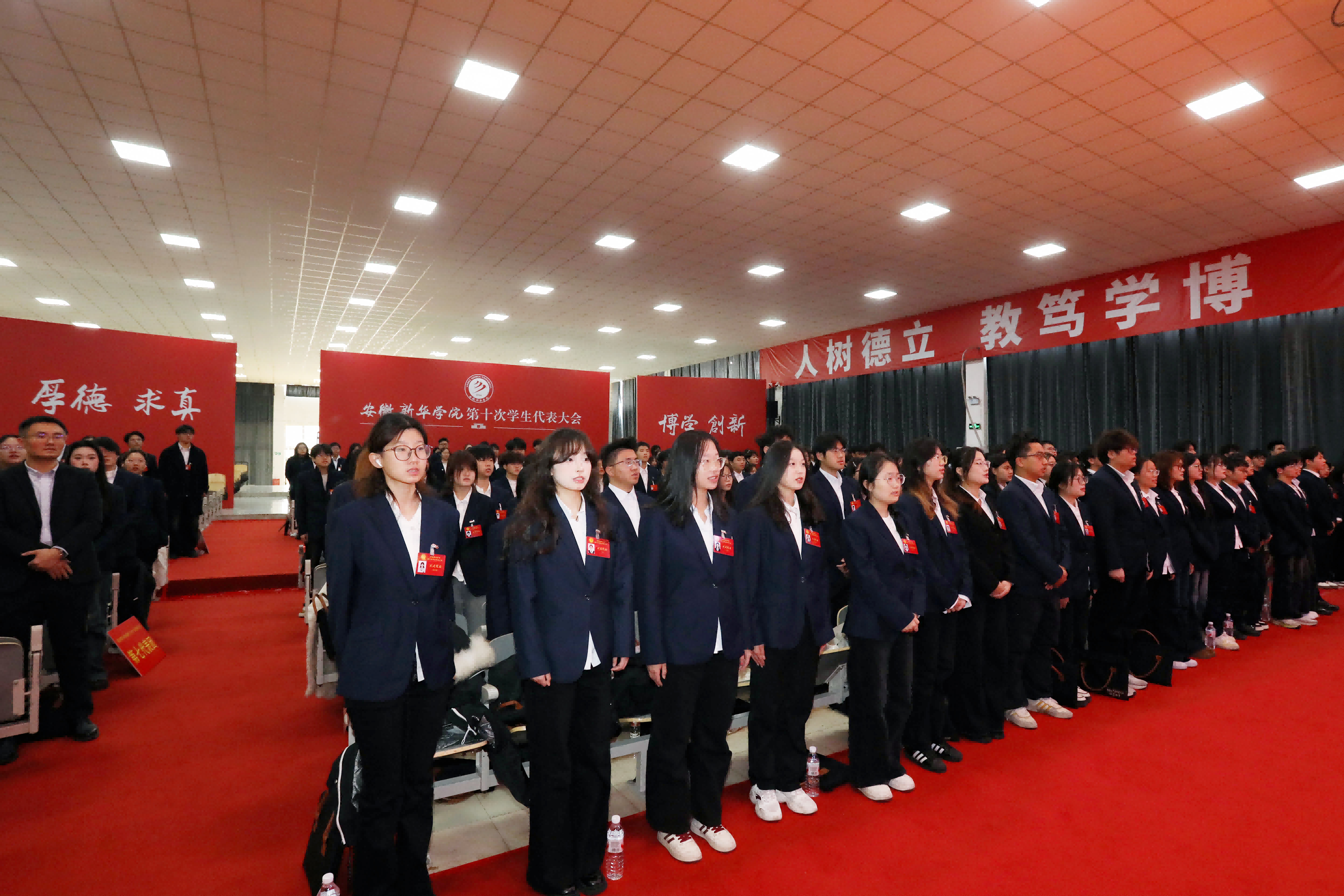 本网讯(通讯员:张安娜 摄影:融媒体工作室/刘瑞、方媛)12月18日上午8时30分,安徽新华学院第十次学生代表大会在大礼堂隆重开幕。参加开幕式的有省督导专员、校党委书记邸建伟,校党委副书记、常务副校长王丽,校党委委员、纪委书记、副校长贺行佳,省学联驻会主席汤佳慧,校工会执行主席、学校办公室主任濮明月,校党委学工部部长芮萍,校团委书记计羚及282名正式代表、21名列席代表。会议由计羚主持。