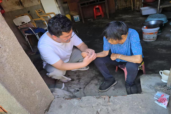 走访人员带着问题清单与真挚关怀,走进一户户农家院落。在村民家中,他们详细询问家庭收入、子女教育、医疗保障等基本生活状况,重点了解当前面临的突出困难和发展需求。不仅如此,由我们的专业指导老师对村民的身体状况进行中医的检查。把脉查看村民的血压和血糖高低,并通过村民自己本人对自己身体患病情况进行概括,由我们老师为他们的病况以所学中医知识让村民对自己身体健康得到充分认识,也有利于老人身体健康。我们华园药院青年实践团队也对裴本福老人家的生活环境和日常需求进行调研,并将其记录下来与政府人员进行沟通主要是去改善他们的生活环境。