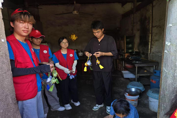 在走访过程中,我们“华园药院青年”实践团队在现场为所走访的老人家包香囊的活动,并将这些香囊给予老人们,我们“华园药院青年”实践团队将这些香囊放置在老人家家中以便除蚊和防潮也可安神助眠,为老人们提供一个更好的生活环境。收下香囊的裴本寿老人家对我们给予极大的称赞。