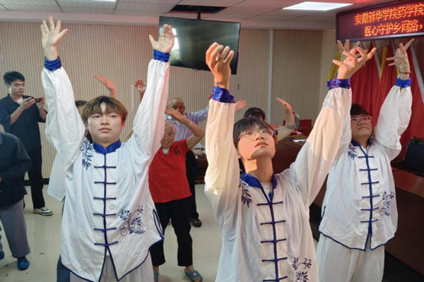 中医指导老师凭借精湛医术,现场为百峰村村民进行针灸治疗,通过精准取穴、规范操作,缓解村民病痛。华园药院青年身着统一服饰,现场展示并带领村民习练五禽戏,一招一式尽显功法神韵。还与村民一同动手包香囊,从辨识药材、研磨调配,到缝制香囊,在互动中传承中医药文化,通过多样的方式为村民送上健康关怀。此外,华园药院青年实践团队成员还为百峰村村民们送上了生活物资。