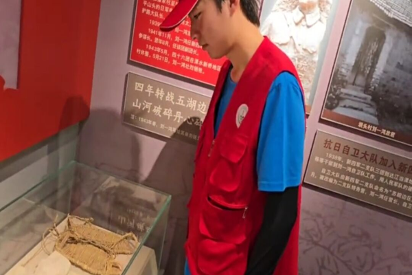 在“百峰民兵作战沙盘”前,讲解员详细还原了1943年百峰村民兵配合新四军夜袭日军据点的战斗场景:“当时民兵利用地形优势,用土制地雷、猎枪与日军周旋,成功牵制敌人兵力,为大部队作战争取了宝贵时间。” 华园药院青年实践团队队员们驻足凝视民兵使用过的土枪,不禁感慨道:“这些简陋的武器,承载着先辈们保家卫国的决心,我们要铭记这份无畏勇气。