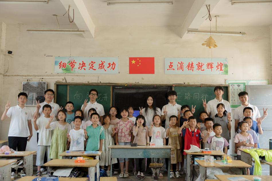 实践团还为学校捐赠了图书和文具,期望为孩子们点燃求知的火种,播下希望的种子。队员谢子峰在感悟中写道:“孩子们眼中闪烁的光芒,正是指引我们青春航向的星辰。”乡村孩子们在困境中依然乐观向上、充满阳光的笑容,深深感染和鼓舞着每一位队员。这场跨越年龄的双向奔赴,不仅为乡村儿童带去了关爱与陪伴,更让实践队员深刻体悟到教育的温度与沉甸甸的责任,坚定了他们未来扎根基层、服务社会的理想信念。