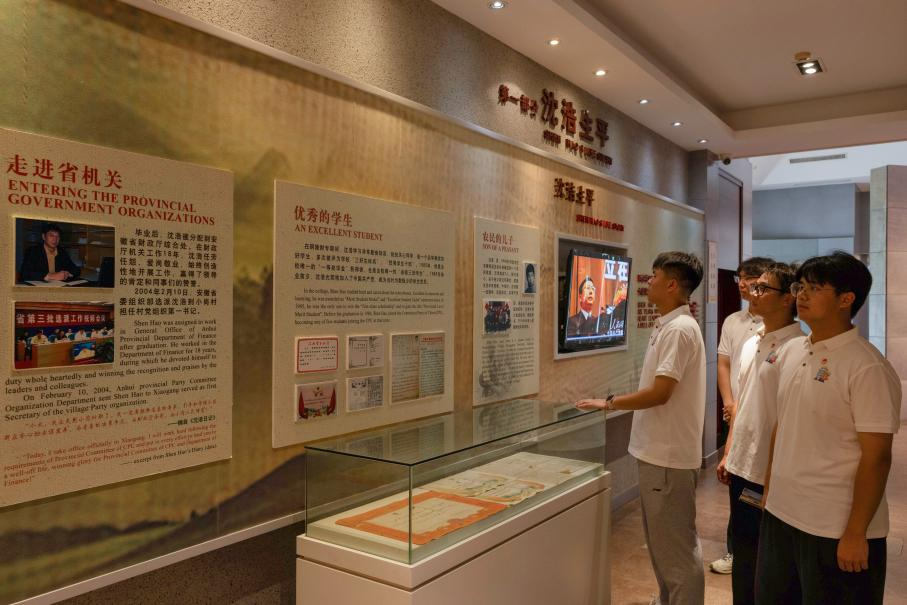 实践团首站前往滁州市凤阳县小岗村,走进沈浩同志先进事迹陈列室,深入学习这位优秀基层干部“心系群众、无私奉献”的精神风貌。队员们通过图文资料、实物展陈和影像资料,深入了解沈浩同志扎根小岗、倾情奉献、廉洁为民的感人事迹,深刻体会他将全部心血奉献给基层群众的崇高精神。