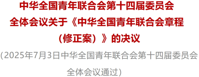 中华全国青年联合会第十四届委员会全体会议审议并一致通过了第十三届委员会常务委员会提出的《中华全国青年联合会章程(修正案)》,决定这一修正案自通过之日起生效。